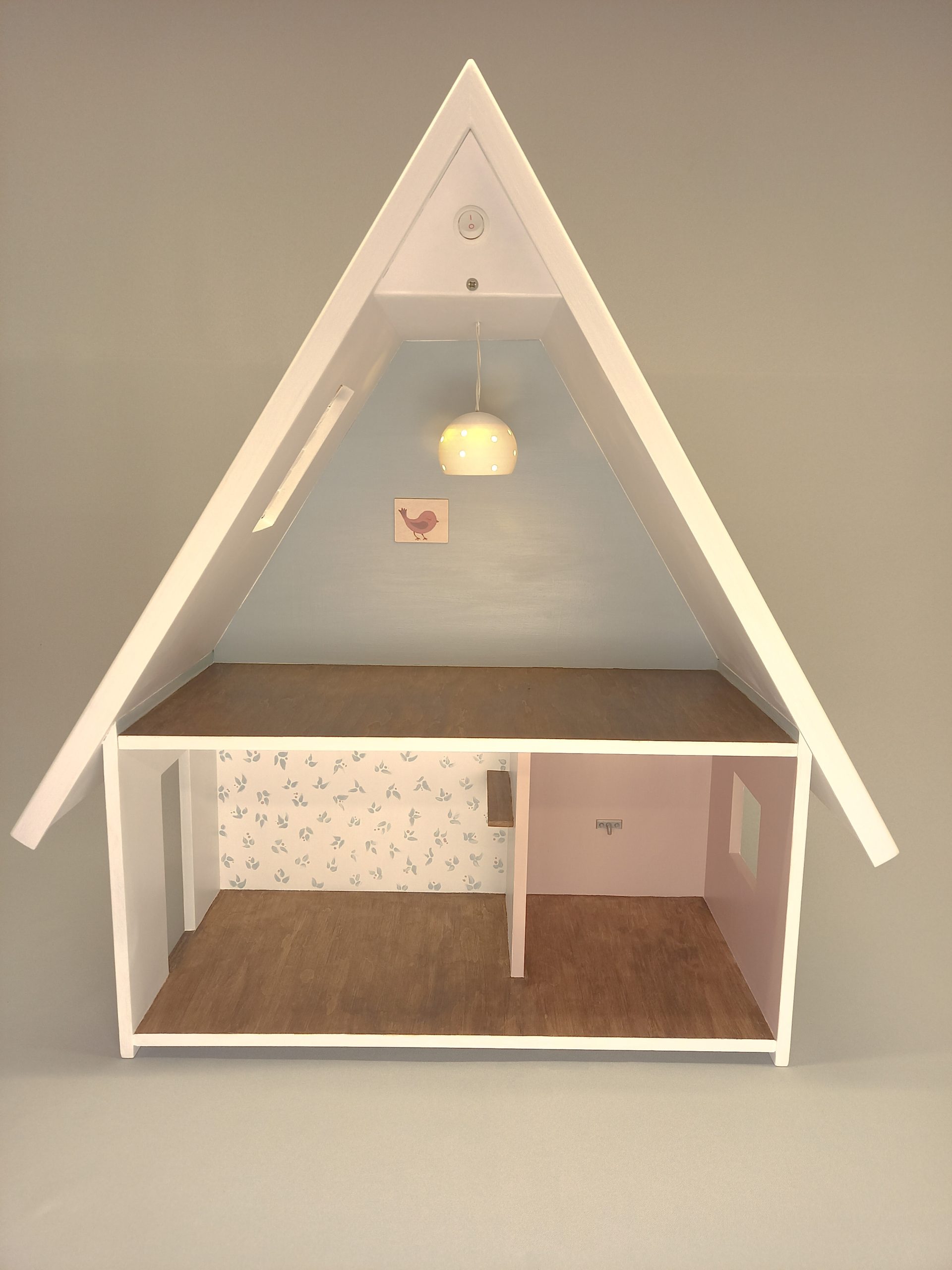 A ház felső szintjén elemmel működtethető világítás van, ezzel egy csepp varázslatot teremtve a szórakoztató játékhoz. A házhoz komplett berendezés is vásárolható.